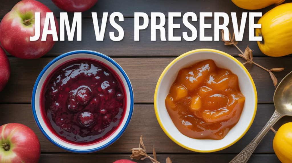 Jam and preserves are closely related, but they are not identical. Jam is made from crushed fruit and offers a smoother, more uniform spread, while preserves contain larger pieces of fruit and deliver a chunkier texture.